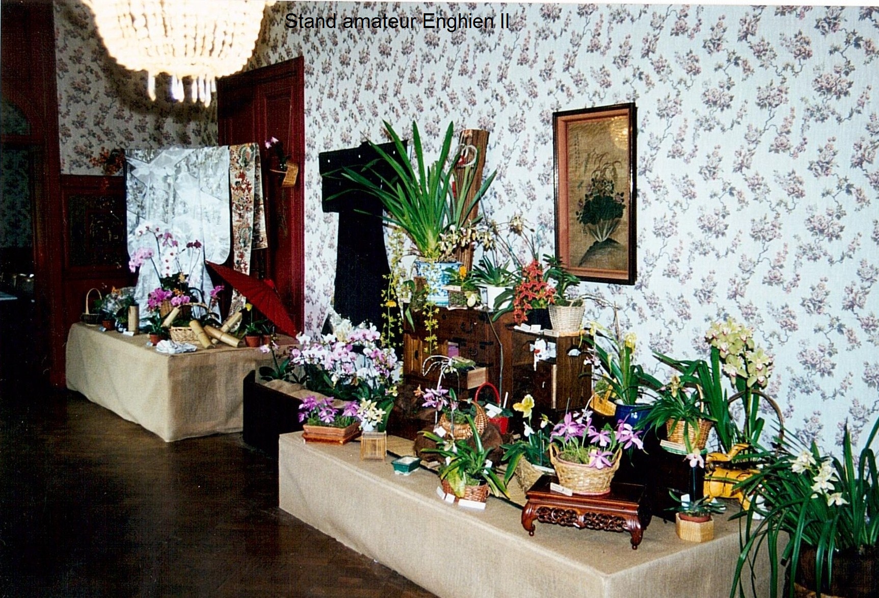 L'association des Amateurs d'Enghien a organisé 2 salles 1 l'une est centrée sur l'idée de la photographie ancienne avec vieux appareils, cadres, films, photographie et sellettes ; l'autre, ''salle japonaise'' utilise du petit mobilier, des vêtements et des vanneries pour créer une ambiance asiatique. I . West Vlaamse Orchideen club Papilio présente ses plantes dans de vieux objets tels une malle, une voiture de poupée, . La salle du Centre d'Etude des Végétaux d'intérêts économique et écologique de l'institut de Biologie Végétale de Liège, pédagogique, présente la culture in vitro avec posters et plusieurs tables couvertes de bocaux d'orchidées a différents stades de leur développement.