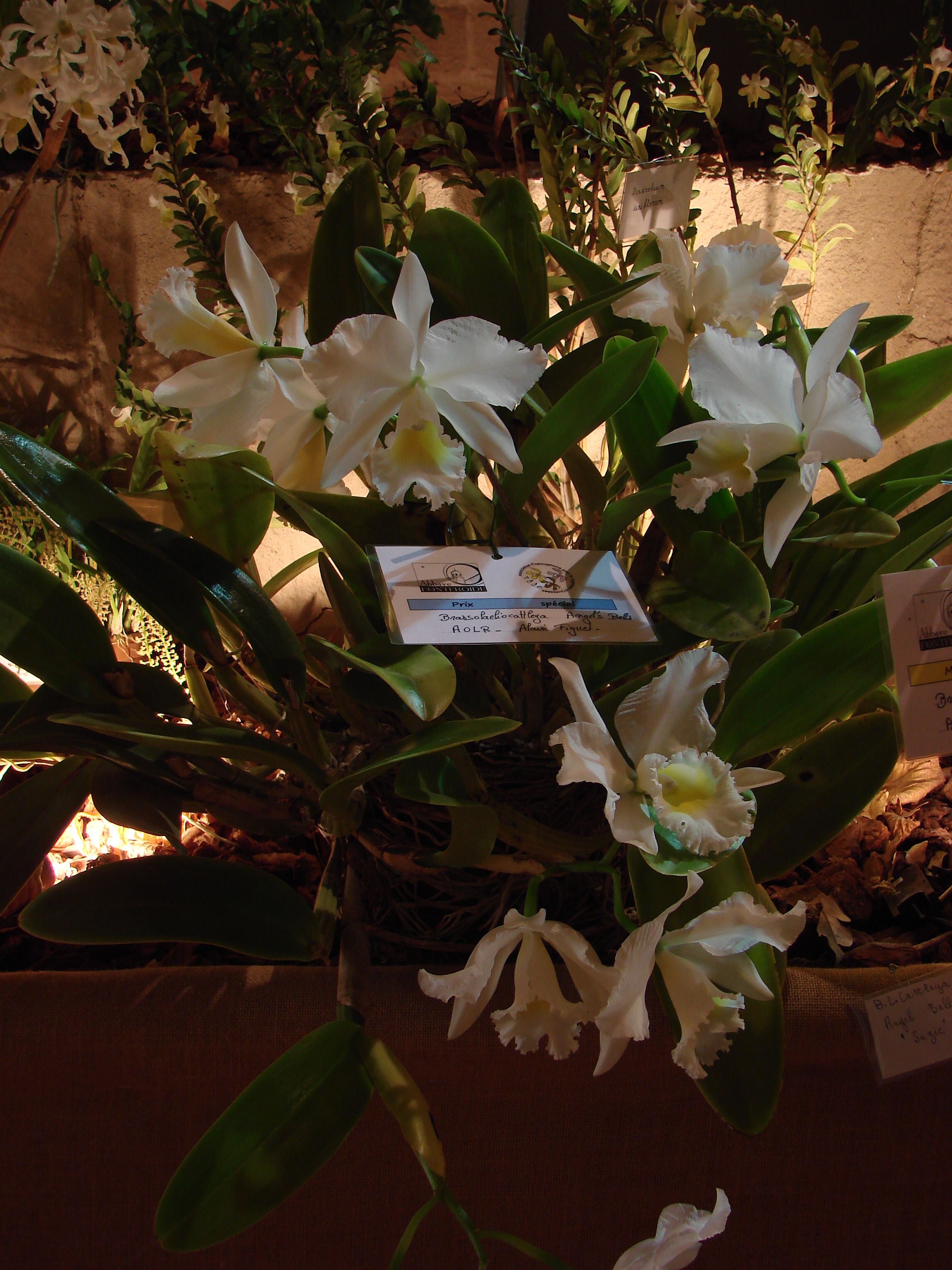 Les orchidées botaniques dignes d'intérêt étaient mieux représentées dans l'ensemble que les beaux hybrides, exception faite d'un splendide Cattleya blanc Angel Bells 'Suzie' en parfaite santé, qui portait 14 fleurs ouvertes et 6 boutons. Cette plante d'amateur (AOLR) a fait l'unanimité et son propriétaire a été justement récompensé par la médaille d'or et un prix spécial du jury. Faute de pouvoir départager les plantes, le jury a décerné deux médailles d'or aux botaniques. L'Eulophia petersii était spectaculaire avec sa longue hampe recourbée et le Phalaenopsis bellina bien fleuri de très belles forme et couleur. Le palmarès par contre ne comporte pas de médaille de bronze pour les hybrides, et une seule d'or pour les miniatures.