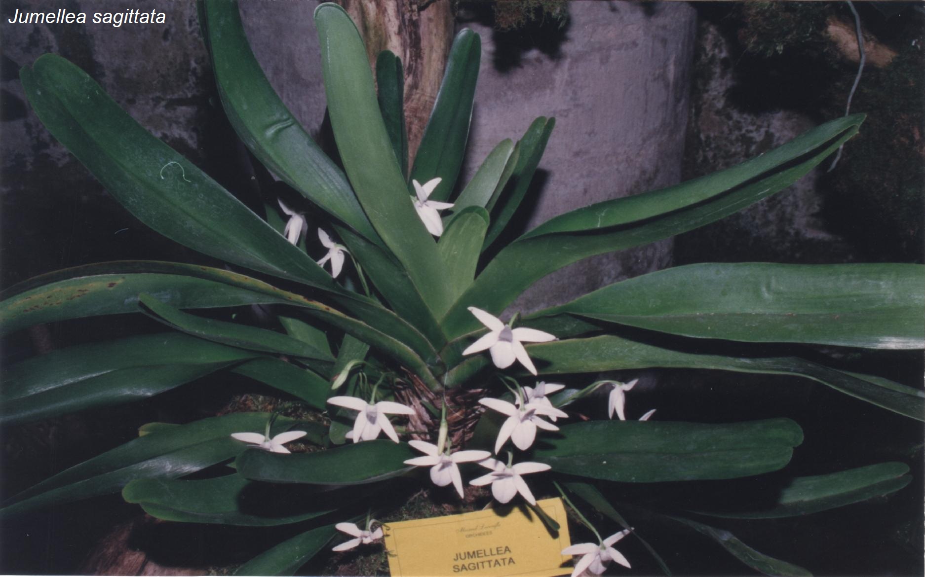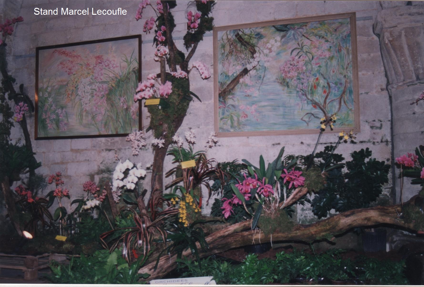 Au stand de Marcel Lecoufle, elles sont très grandes, d’un jaune fluorescent et portent, outre le nom de la plante entièrement en lettres majuscules, le nom de Marcel Lecoufle en lettres manuscrites et Ie mot orchidées en petites majuscules. Elles ont le mérite d'une grande lisibilité mais attirent peut-être trop le regard de par leur coloris, et le jeu des caractères employé ne semble pas très heureux, compte tenu des règlementations de nomenclature.