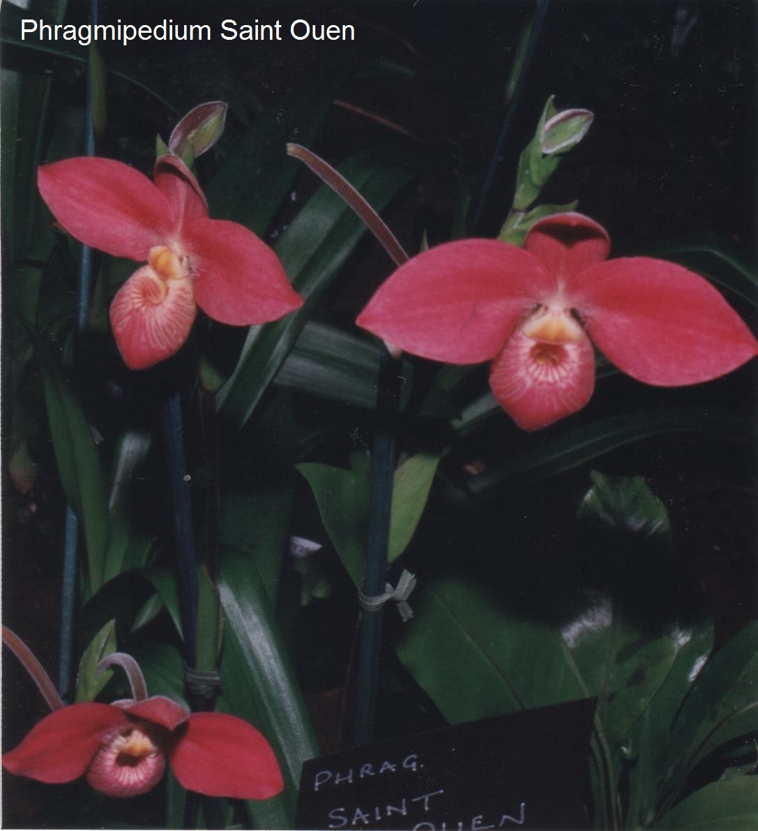 On voit bien qu'il s’agit ici d’un jugement d’exposition et non d’un jugement de table : les deux Phragmipedium, fort beaux par ailleurs, sont amputés chacun d’au moins une fleur, la plus belle miniature n’est pas étiquetée d'où sa dénomination ''sp.'', et '' la plus belle plante de l’exposition '' exhibe sur la gauche une feuille bien jaune !