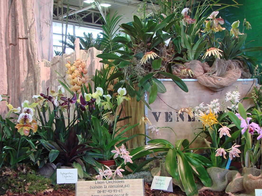 Orchidées Stand harmonieux, disposé avec recherche et plantes de très belles qualité, de genres diversifiés |