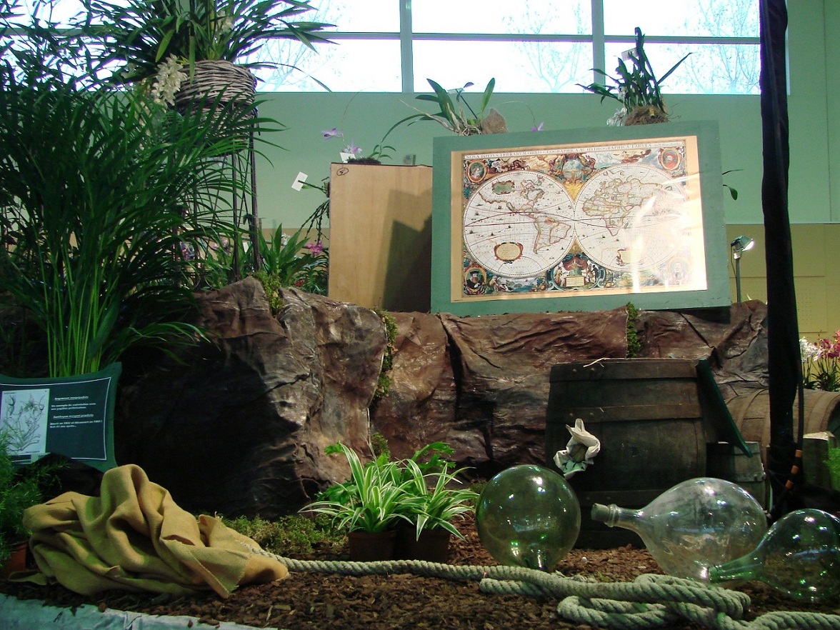 L'exposition s'est tenue, comme à l'accoutumé, dans la grande salle de l'espace Vergeze. Sa forme quasi carrée permet un agencement classique, les producteurs d'orchidées y ont leurs stands de vente disposés sur le périmètre, entourant la zone d'exposition, et le hall d'entrée accueille les stands annexes. Un coin de la grande salle est réservé au bar/caféteria, on peut s'y restaurer en profitant du décor.